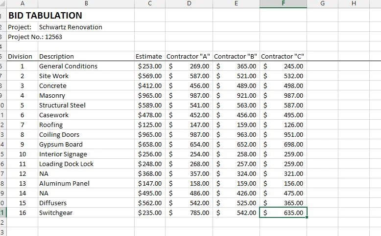 - Assist the Owner in understanding and comparing the cost of the Project presented by each bidding contractor.